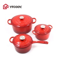 Không dính tráng men gang Cookware Set,6 cái chậu và chảo với nắp, nước sốt Pan, khỏe mạnh vòng Hà Lan lò nồi cho bánh mì nướng
