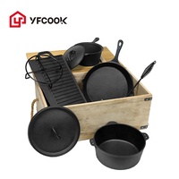 8 Piece pre-dày dạn Hà Lan lò nấu ăn Set gang cắm trại nhà bếp đồ nấu nướng bakeware skillets & VUÔNG nướng PAN